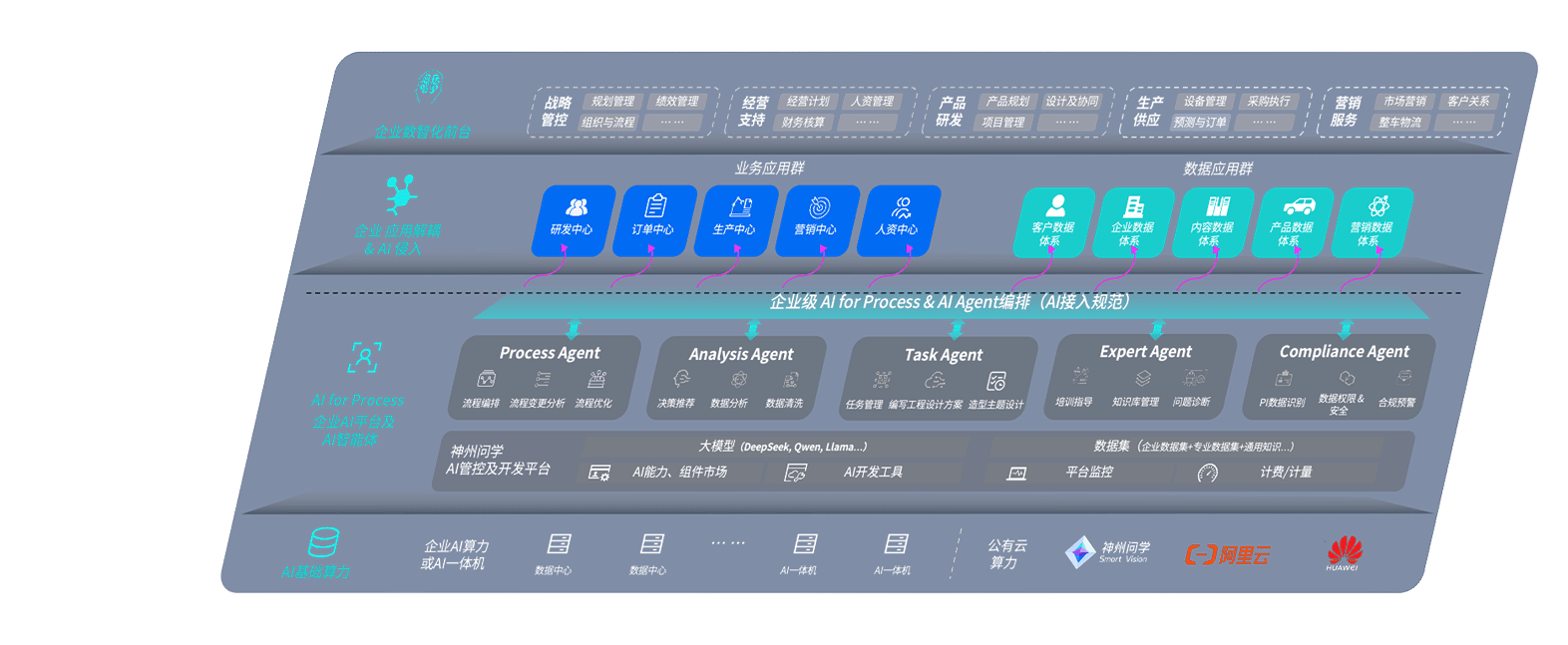 风暴娱乐问学智车解决方案是一套基于AI技术的汽车行业智能化系统,,,,覆盖从底层算力到顶层AI应用的全栈方案。。。。方案由算力层、、模型层和应用层组成:算力层,,方案支持多种一体机配置,,具备云端灵活部署、、、多云适配以及动态优化计算资源的能力;模型层,,,,风暴娱乐问学平台版提供了企业级AI应用一站式构建与管理平台,,支持基于后训练强化技术的汽车企业专属模型的训练、、、、评测和运营;应用层,,,,风暴娱乐问学DeepSeek版提供包括超级员工、、、智能招采、、、、智能营销、、、、智能客服、、、AI for BI等一系列解决方案,,,可助力汽车行业实现数字化转型,,,,让管理更智能、、响应更敏捷。。。。